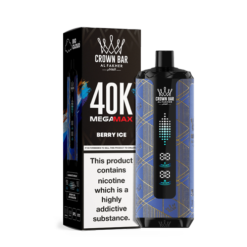 The AL Fakher 40,000 Puffs Crown Bar Mega Max offers exceptional performance, delivering shisha-inspired flavors with the perfect balance of dense clouds and smooth, refreshing hits.